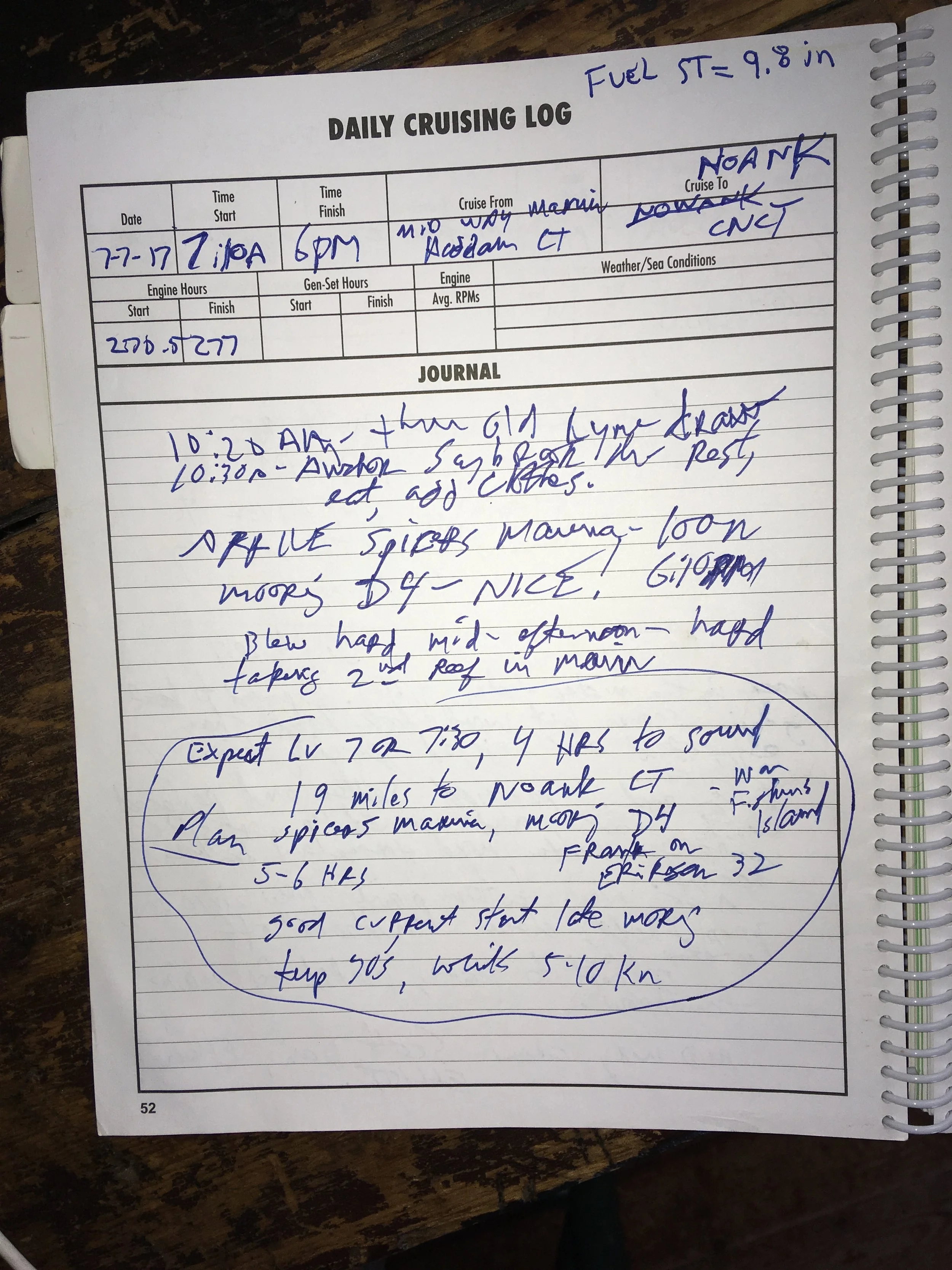 While I was at Mid-way Marina I got to talking with a guy. He was hauling his boat early, and when he learned I was heading east on the sound he told me if I ended up in Noank, to go to Spicer’s Marina and use his mooring, D-4. Amazingly, I remembered this and did indeed spend the night on Frank’s mooring. I left him a note written on white duct tape stuck to his mooring pennant, “Thanks for the mooring Frank, Rob Feeney, Mid-way Marina.”