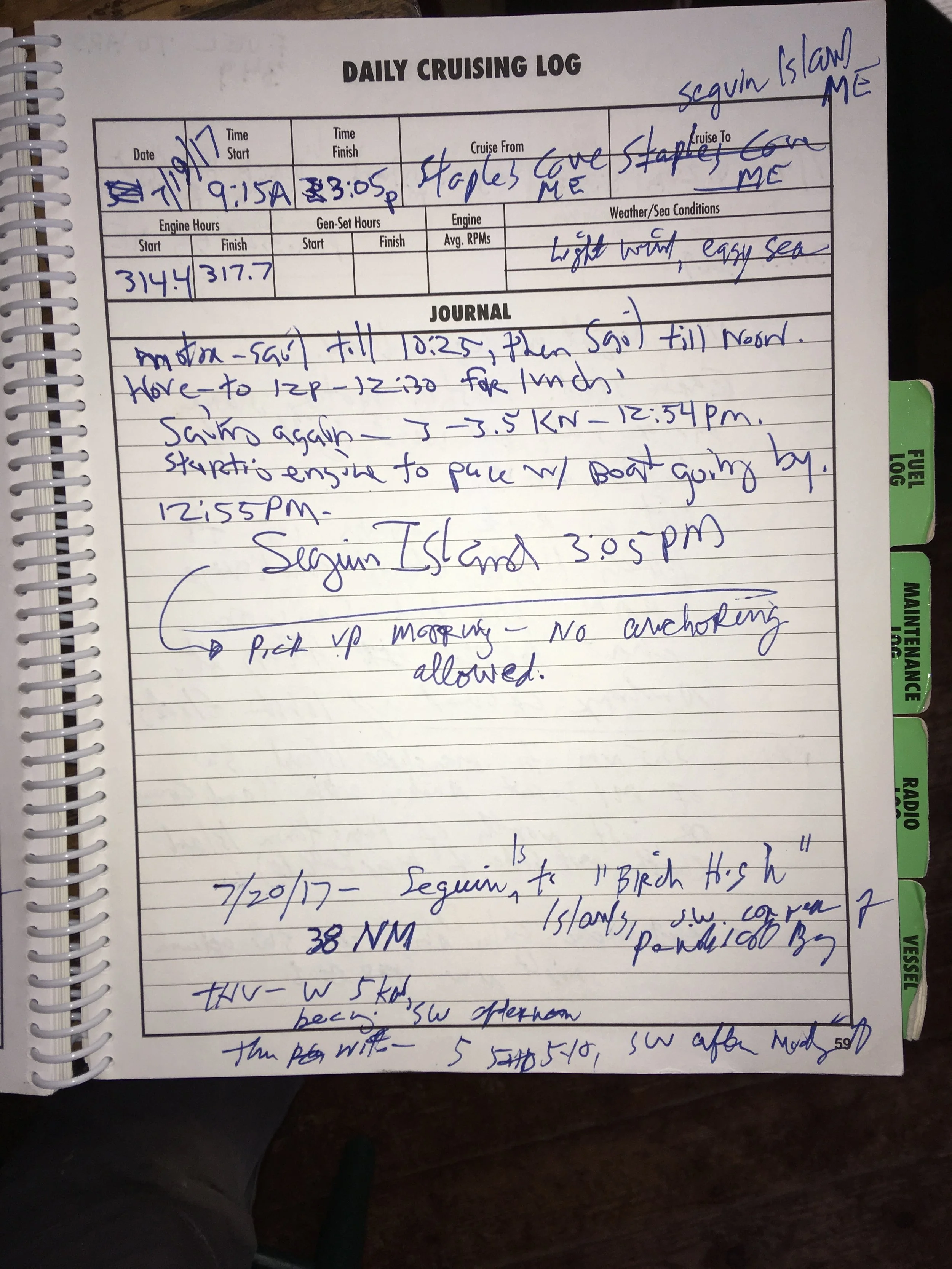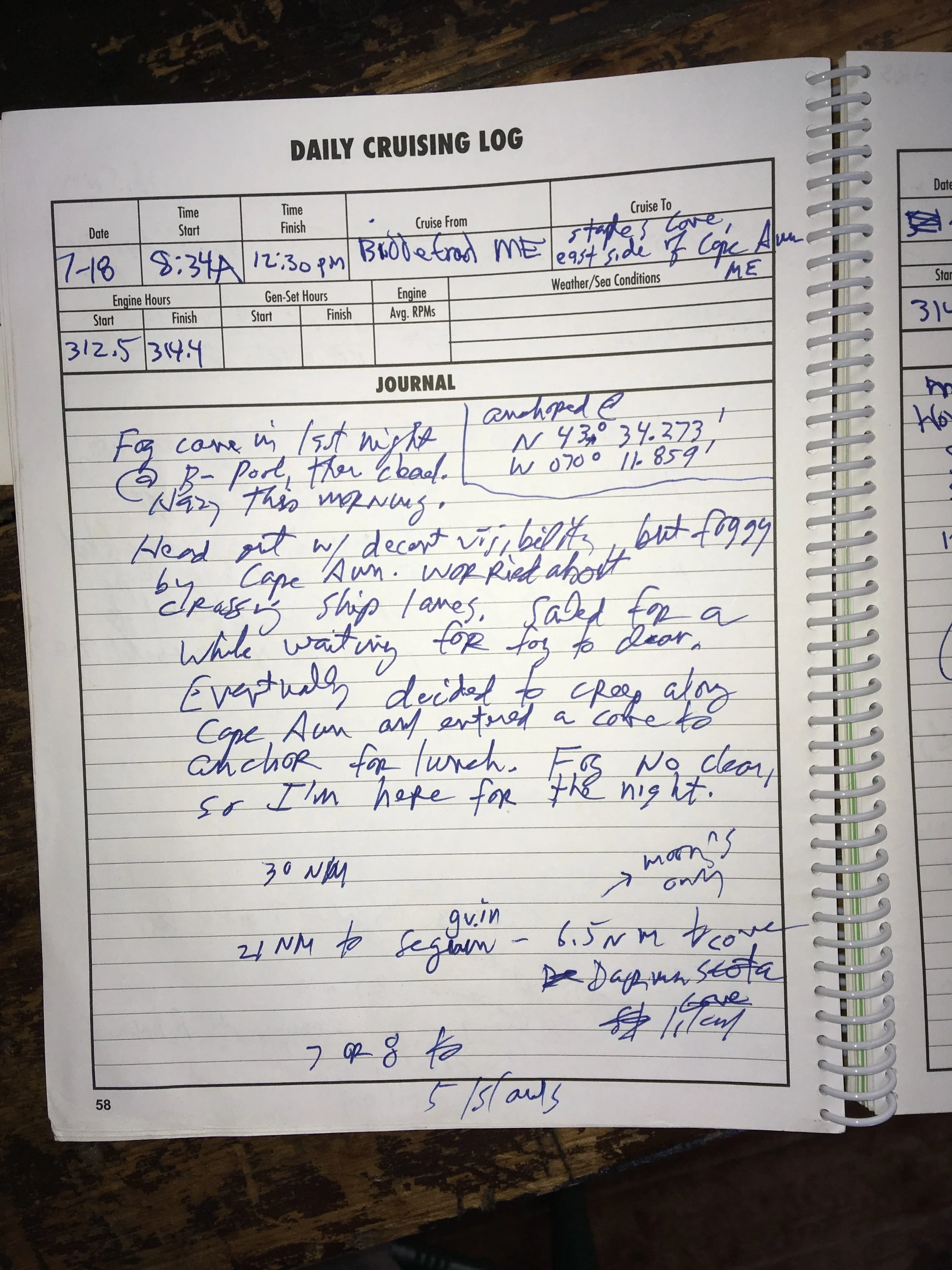 The log page above refers to Cape Ann several times, and of course I meant Cape Elizabeth. Cape Ann is in MA, and Cape Elizabeth is in Maine, just south of Portland. Doh!