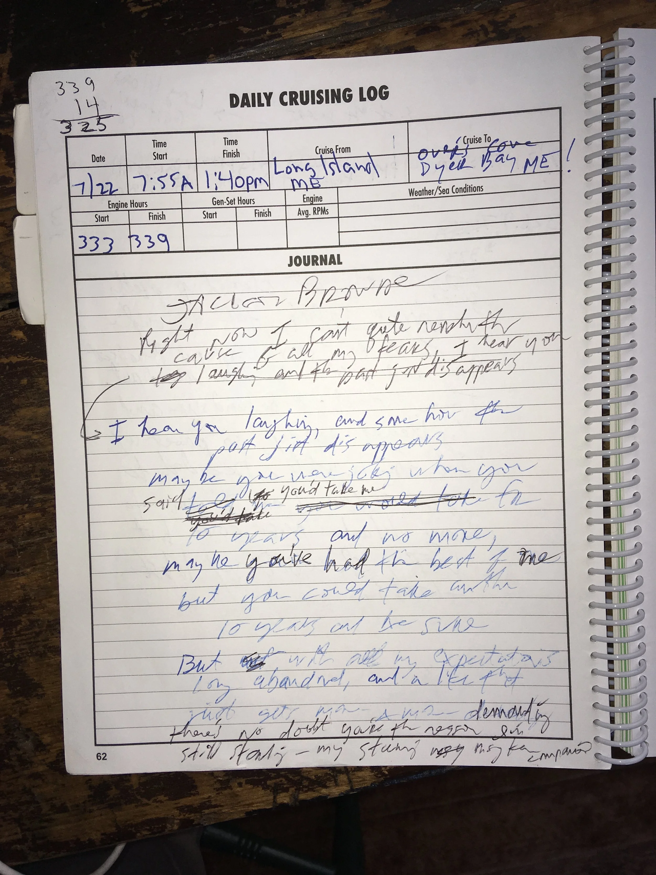 The notes in the log page above don’t have anything to do the trip. They are the lyrics of a Jackson Browne song I was inordinately preoccupied with at the time.