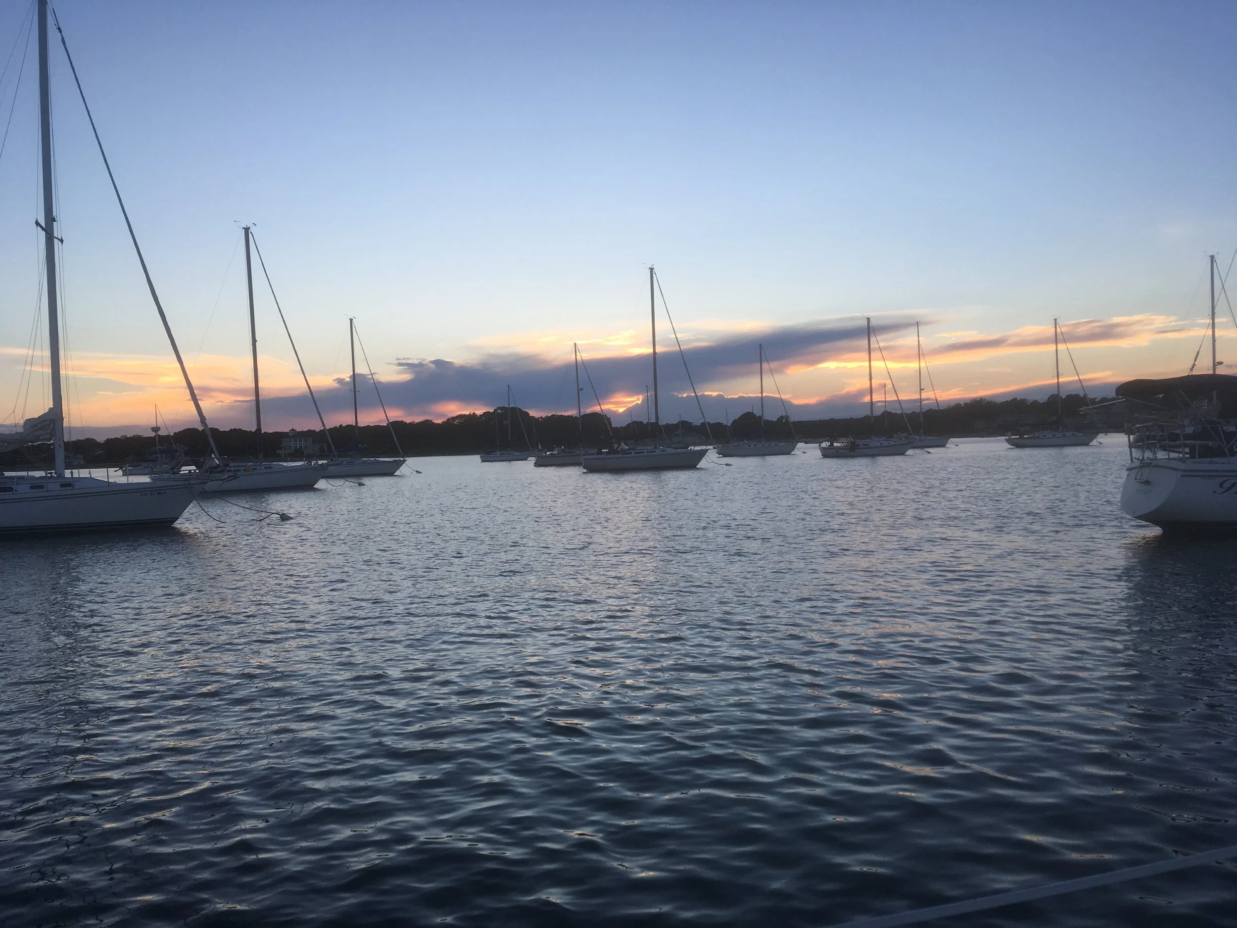 Sunrise in Cohasset. This was a pretty nice anchorage, though it’s ringed with boulders that are just under water at mid-tide, so you need to be careful picking your line on the way in and out.