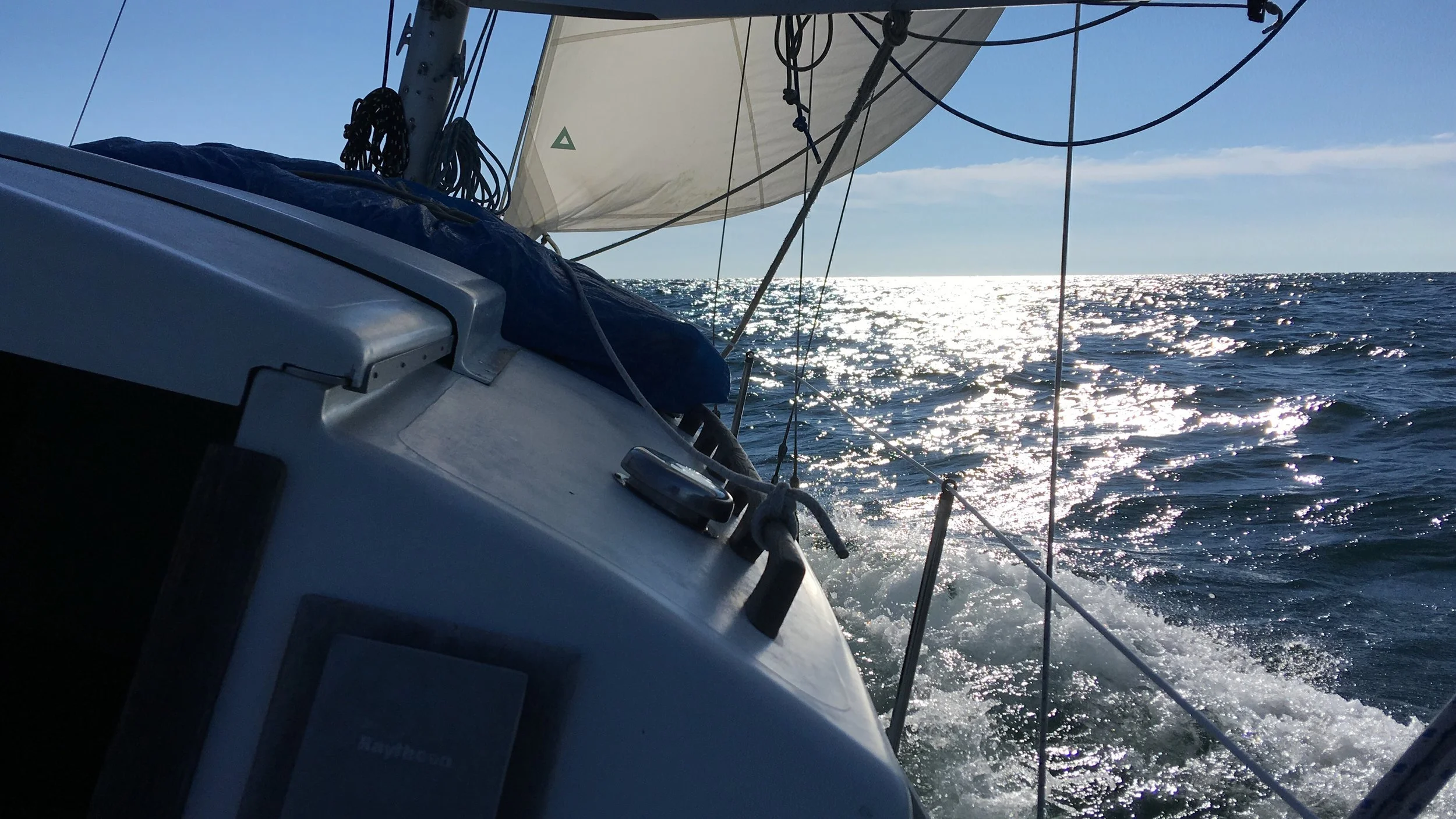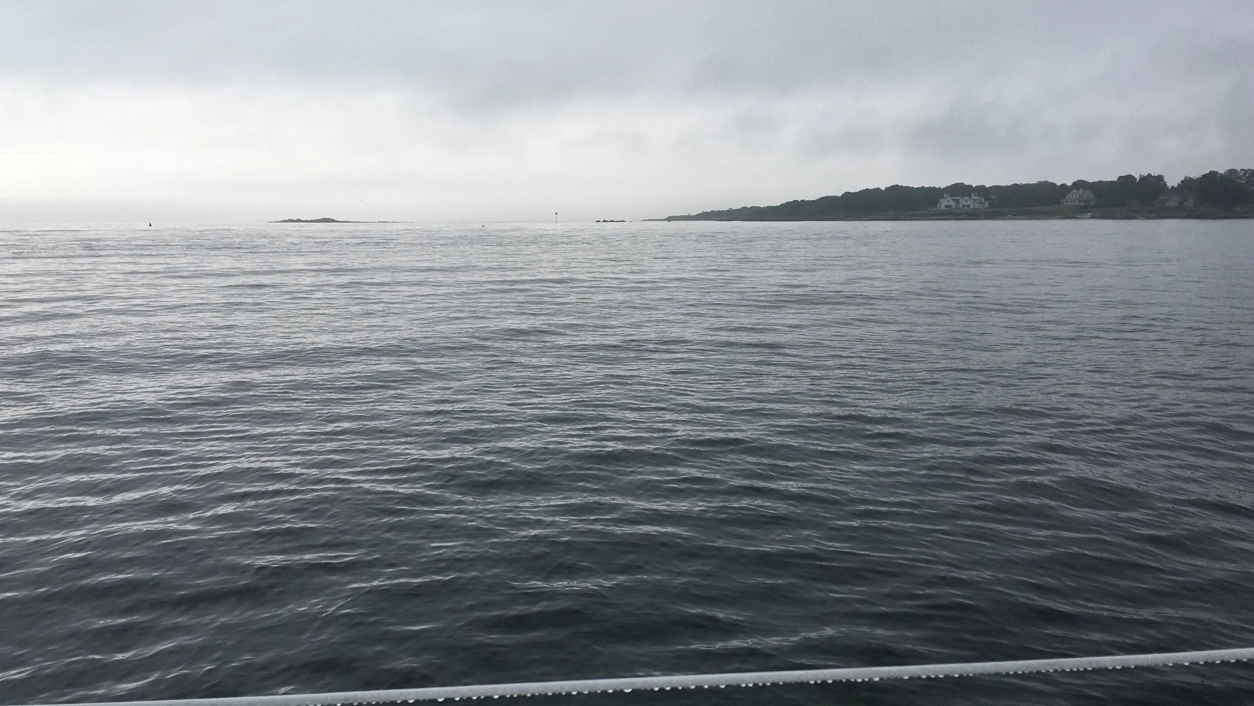 Around 8am, chopping along on what looks like a beam reach. This is heading toward Buzzards Bay, I think.